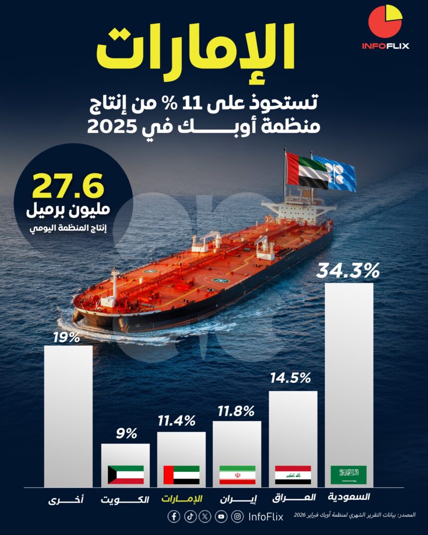 قراءة: الإمارات تستحوذ على نحو 11% من إجمالي إنتاج منظمة أوبك