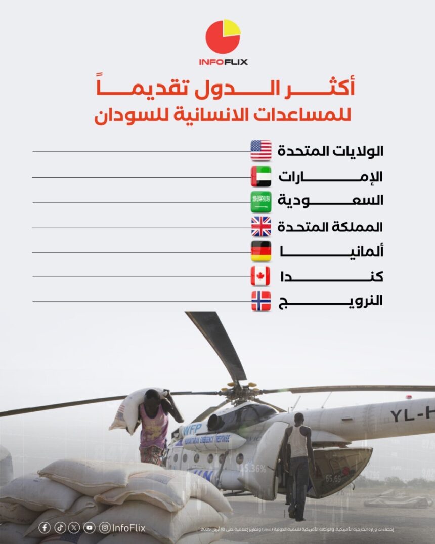 إنفوليكس > الإحصائيات العالمية > أبرز الدول المانحة للمساعدات الإنسانية إلى السودان